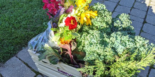 Often known as a CSA (Community Supported Agriculture) or Farm Share or Veggie Box, it's a program where a customer subscribes into receiving a "share" of the harvest. When produce is ready, it's harvested, prepared and divided-up, then picked up by the customer. Subscribing into the program before the season begins lets the farmer know how much to grow and for whom. Planning is important! A share is an investment in the local food supply.